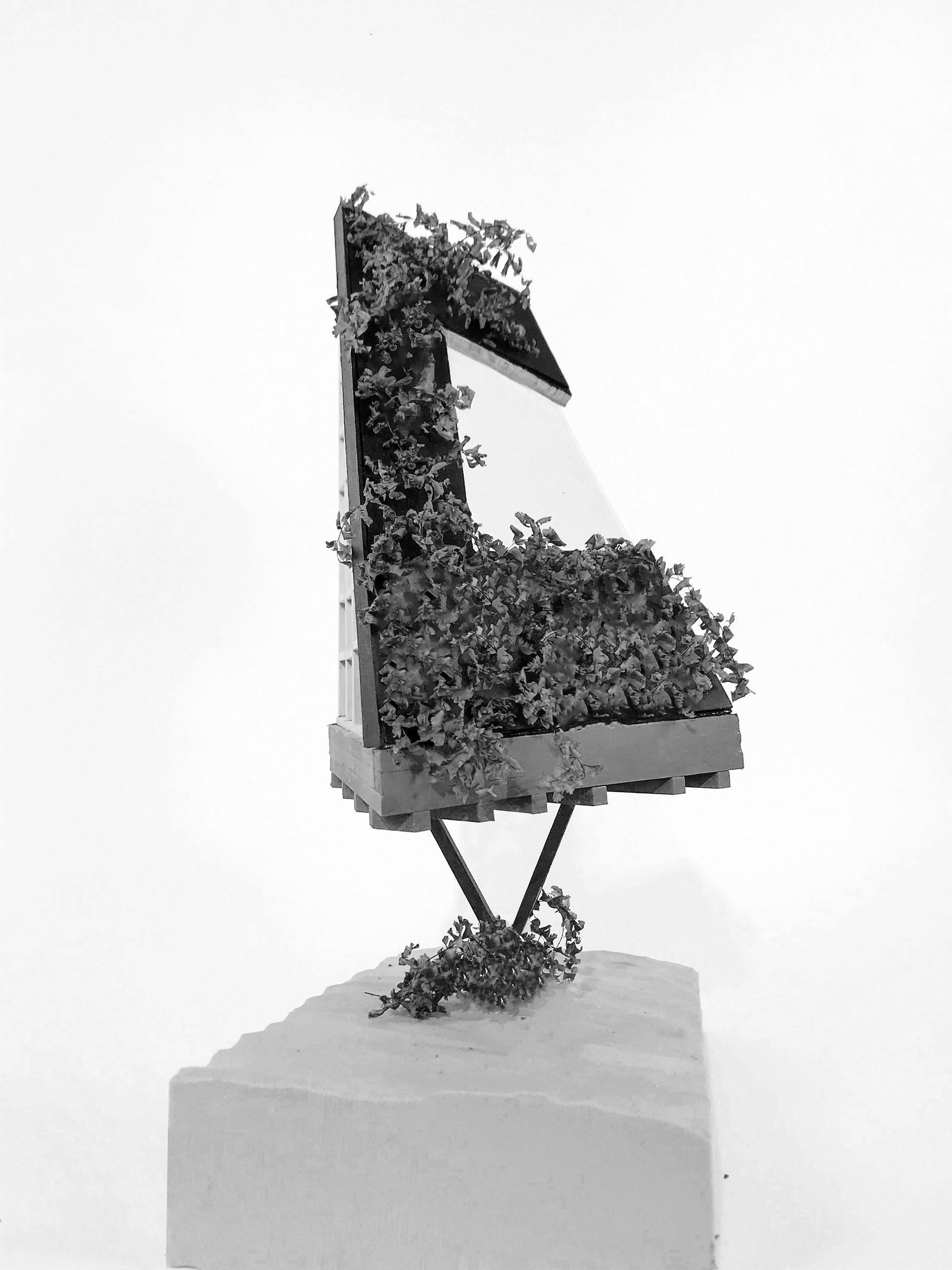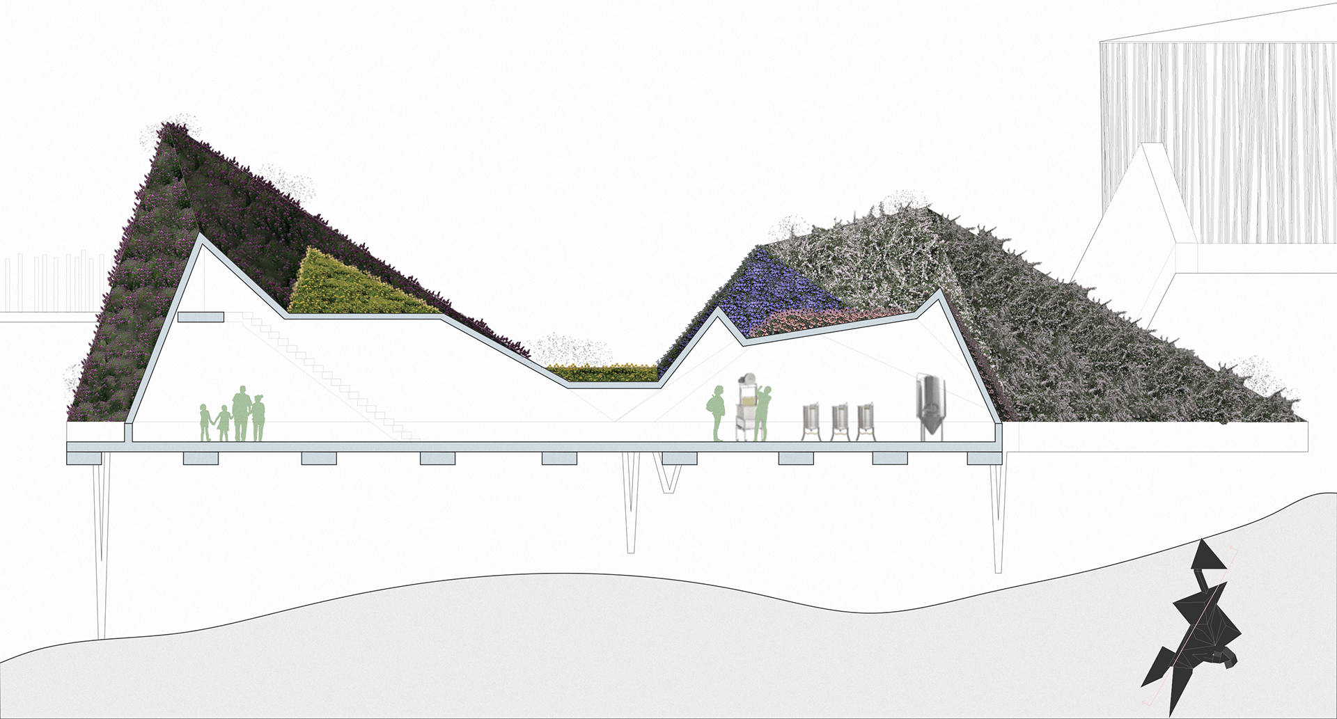 Portions of the pyramidal roof are designated with plants that will flower at different times throughout the growing season.