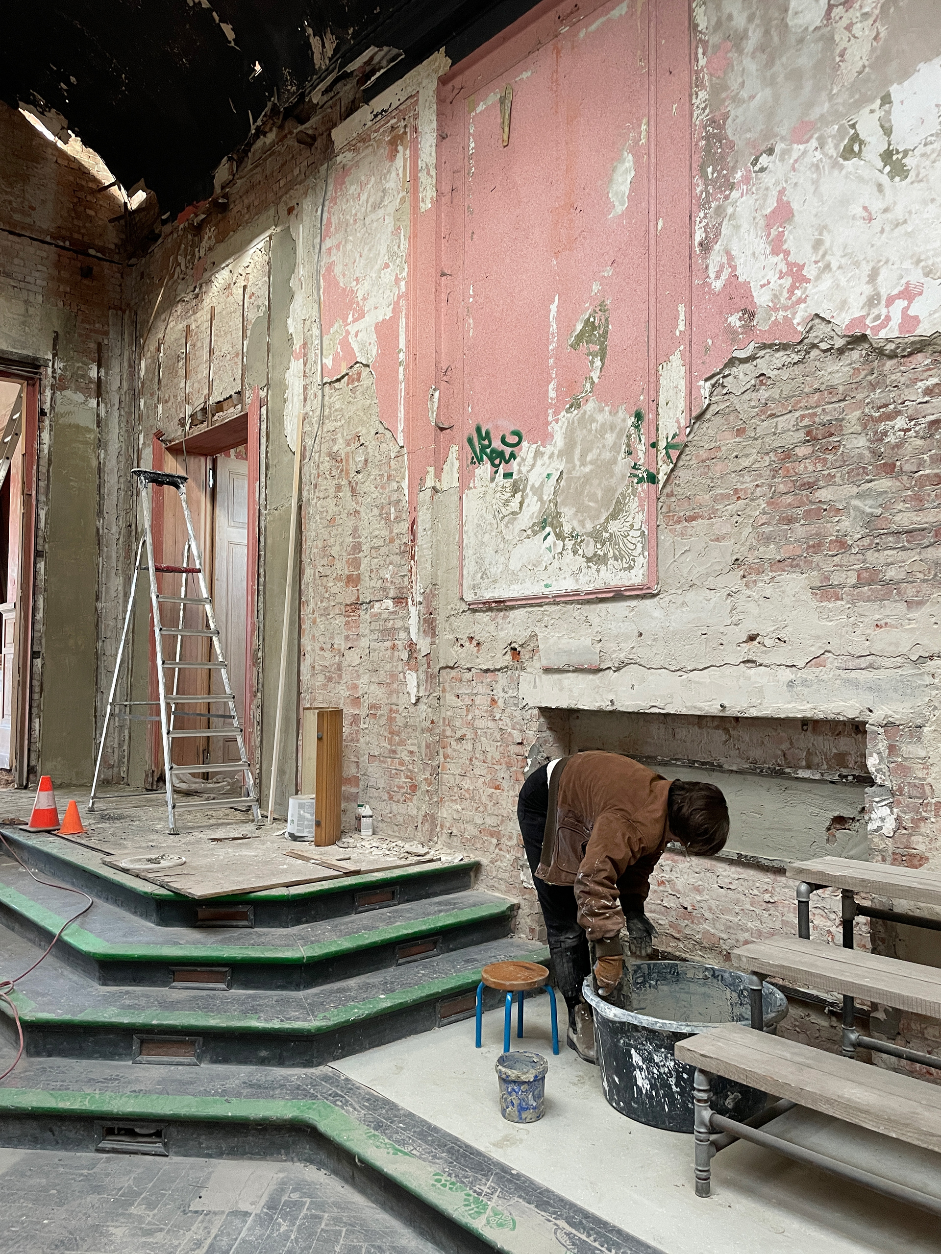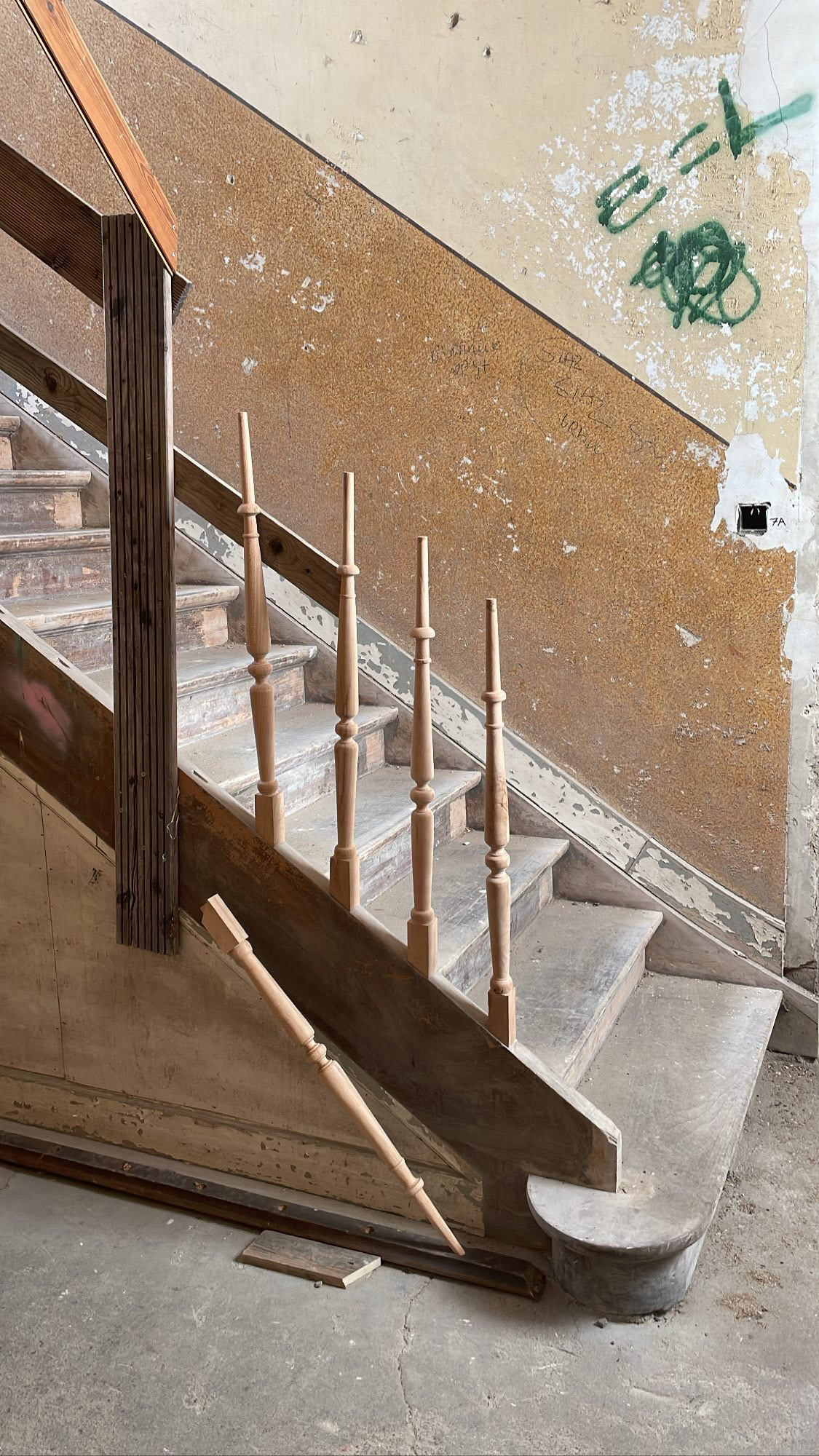 My partner McKinley and I had the opportunity to go abroad to Belgium to live and work in the historic Casino Van Gompel. Rich with history, and originally an event space for a local glass company, ownership transferred from German outpost in World War II, to night club, to abandonment for 30 years. Our work to rehabilitate the space consisted of applying a lime and sand mixture to decrepit walls, and fabricating new stair balusters to meet code requirements. It is intended to serve as a community center and hotel once completed in the next two years.
