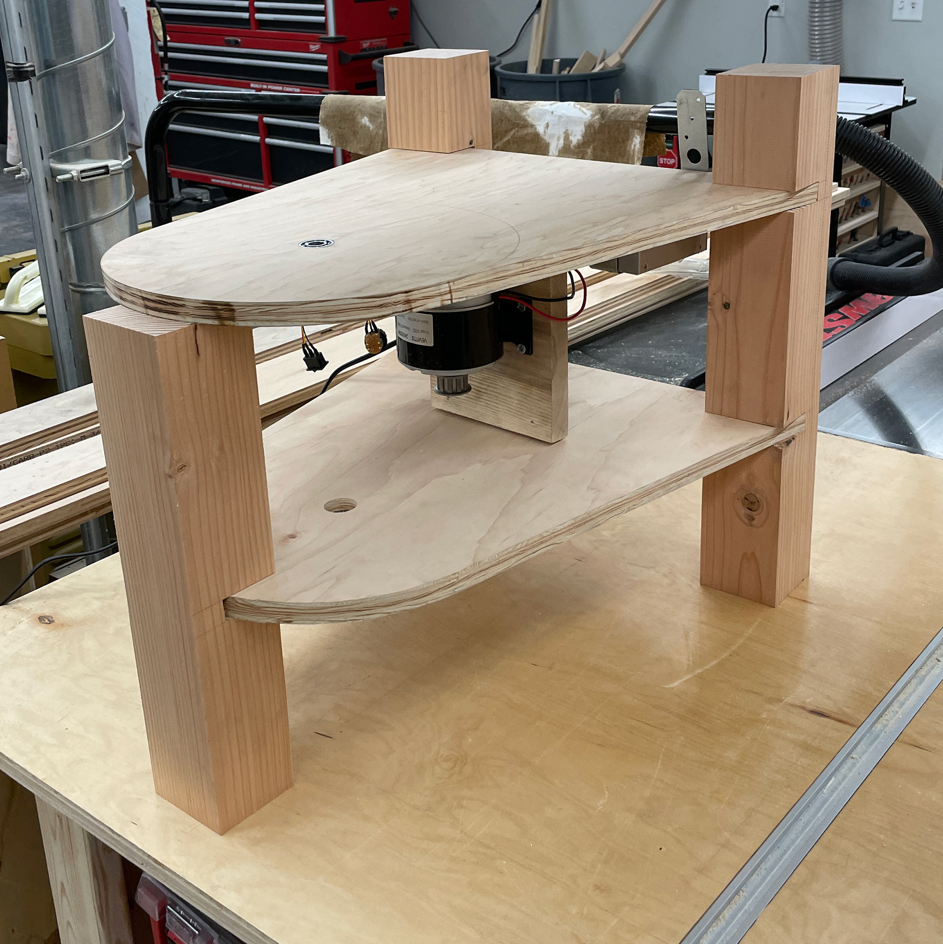 My partner, McKinley, expressed interest in picking up throwing again. Wanting to help make that interest into a reality, I took to the internet to see how much pottery wheels cost and where to get one. To my surprise, they were far out of my budget, and that's when I turned to building our own from scratch. This work in progress has been a great puzzle testing what I know about gear ratios, electric wiring, and engineering. All non-electric pieces have been fabricated and designed by me, for McKinley to hopefully one day soon be able to throw clay on a custom wheel.