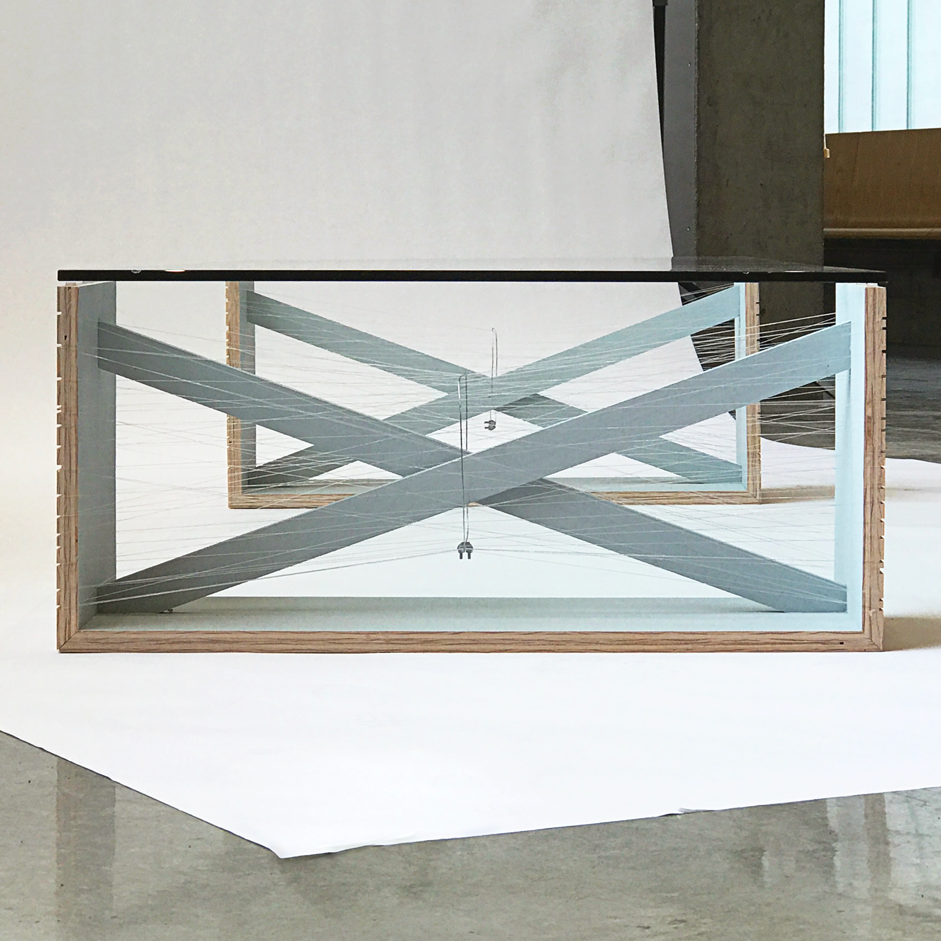 Tensile Trestles found their origin in an iteration focused on experimentation with tension and compression. As the design moved forward, the aim switched to tensile play to discover effective ornamentation in coffee table design.